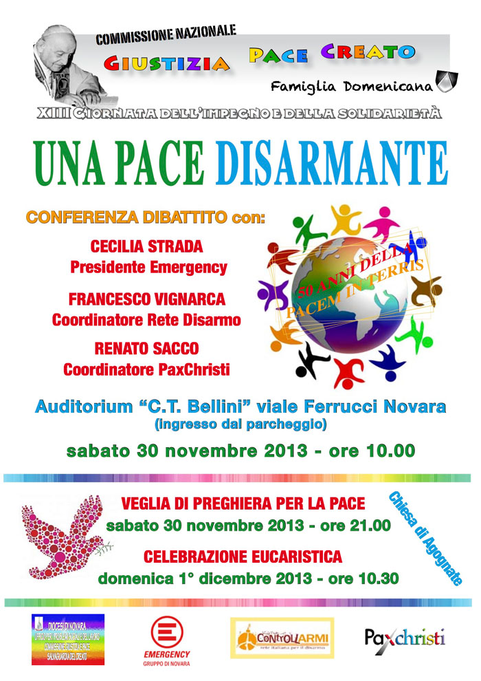 Sabato 30 novembre, a Novara, convegno “Una pace disarmante”