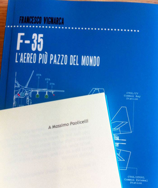 Un volume che spero possa divenire contributo utile al dibattito sui caccia F-35 e più in generale sulla questione delle spese militari, ovviamente a supporto delle iniziative in tal senso di Rete Disarmo, in particolare nell’ambito della campagna “Taglia le ali alle armi”. Il libro è dedicato alla memoria di Massimo Paolicelli (senza il quale questa azione e questa campagna non sarebbero forse nemmeno iniziate), un mio grande amico e grande uomo di nonviolenza e disarmo. Ci mancherà ma cercheremo di continuare a lavorare per i nostri sogni ed ideali con lui nel cuore.
