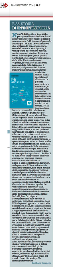 Una recensione al mio libro sugli F-35, in uscita su “Rassegna Sindacale”