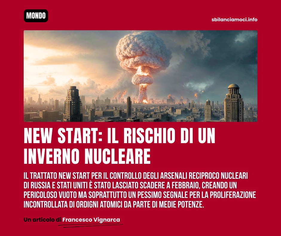 Il trattato New Start per il controllo reciproco degli arsenali nucleari di Russia e Stati Uniti è stato lasciato scadere a febbraio, creando un pericoloso vuoto ma soprattutto un pessimo segnale per la proliferazione incontrollata di ordigni atomici da parte di medie potenze. Mio commento per Sbilanciamoci.