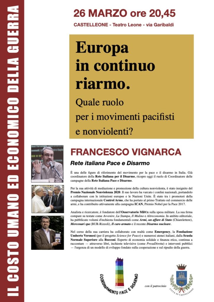 Incontro con FRANCESCO VIGNARCA di Rete italiana Pace e Disarmo nell’ambito del ciclo IL COSTO UMANO ED ECONOMICO DELLA GUERRA