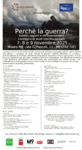 Intervento ad una delle sessioni del Convegno “Perché la guerra? Assetti, ragioni e oltrepassamenti“ promosso da Decentramenti e Ires Veneto in programma al Museo del Novecento di Mestre dal 7 al 9 novembre. 8-11-2025 Sessione mattutina 9.00-13.00 Tecnologie belliche e impatti ambientali: nuove guerre, nuove ferite L’impatto che l’accelerazione tecnologica sta avendo nei conflitti …